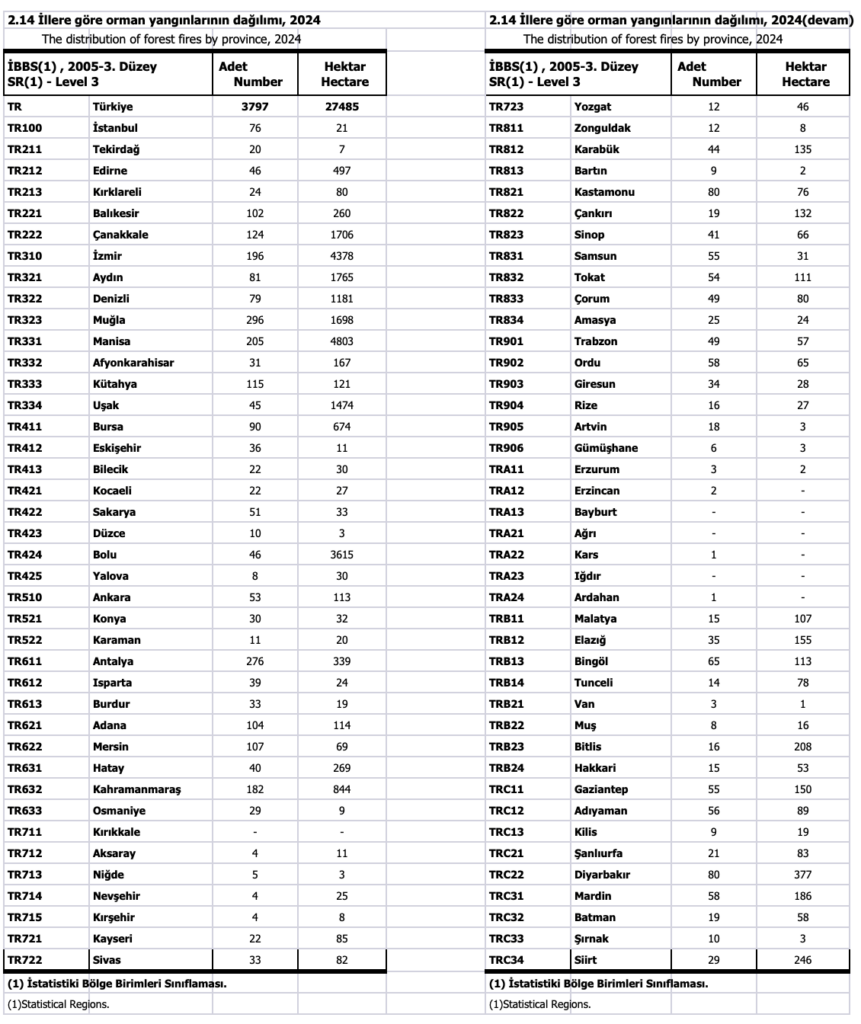 Kış ortasında Doğu Karadeniz’de orman yangını normal mi? sorusuna cevap ararken, aşağıdaki tabloda sunulan veriler bize ışık tutabilir. Görüldüğü üzere Doğu Karadeniz Bölgesindeki illerin yangın istatistikleri birbiriyle benzerlikler içeriyor. Neredeyse tamamı ise bahçe temizlikleri sırasında yakılan anızlardan kaynaklanıyor. Diğer istatistiklere ulaşmak için tabloya tıklayabilirsiniz.
